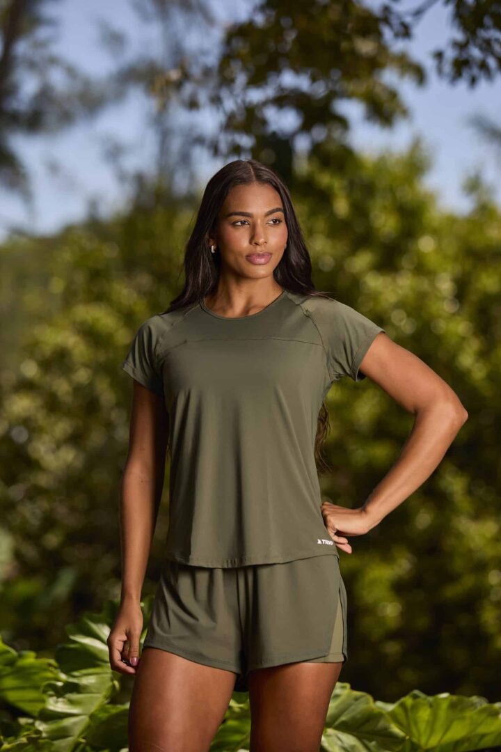 Desenvolvida em tecido de poliamida, com toque suave e proteção UV. Ideal para todos os esportes, inclusive ao ar livre.