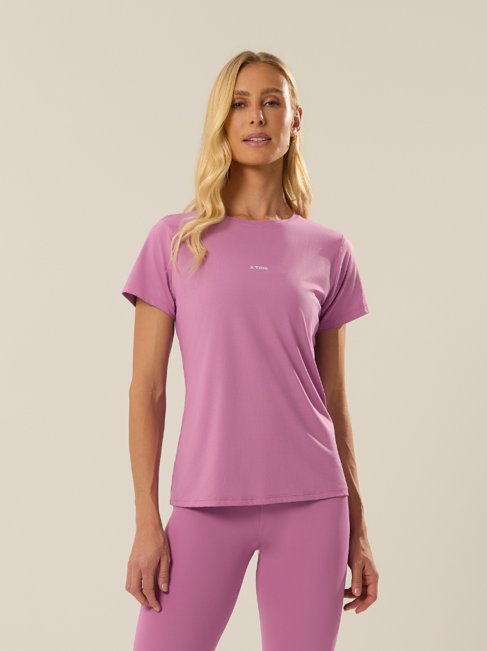 Simples, funcional e com caimento perfeito. A blusa Ruthe tem manga curta, modelagem reta e comprimento médio, ideal pra compor seus looks de treino com leveza e praticidade.