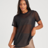 Blusão tamanho único, em tecido tule 100% poliamida.