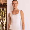 Modelagem ajustada ao corpo, busto forrado com elástico, decote quadrado e alças largas. Versátil e sofisticada, com decote posterior em elástico para sustentação. Produzida em poliamida com tecnologia Lycra Adaptiv, oferece compressão, toque macio e proteção UV+.