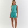 O Cropped Flora apresenta um estilo esportivo minimalista, com modelagem reta e corte levemente oversized, oferecendo conforto e leveza. O decote redondo alto e as cavas amplas garantem liberdade de movimento, enquanto o comprimento encurtado valoriza a silhueta e harmoniza perfeitamente com peças de cintura alta. A barra sutilmente arredondada adiciona um toque moderno e despojado ao visual.