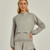 Com modelagem clássica e comprimento na linha da cintura, a Bomber Aurora une o visual esportivo e urbano. Possui bolsos frontais funcionais com lapelas, fechamento em zíper e punhos ajustados que garantem conforto e caimento estruturado. Uma peça versátil e atemporal, ideal para sobreposições cheias de personalidade.