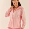 Uma terceira peça que faz diferença. A bomber Ruthe tem modelagem oversized, capuz com ajuste, bolsos laterais e barra regulável, pra usar do seu jeito.