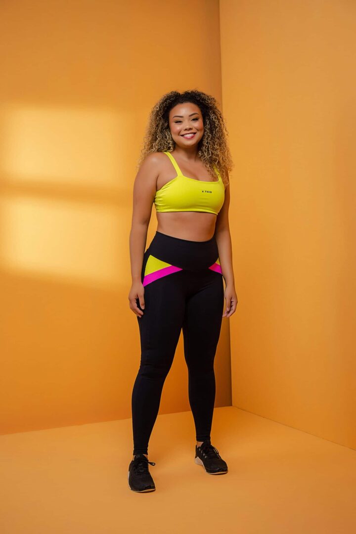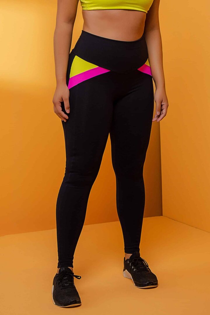 LEGGING LIVIA PRETA COM ROSA CHICLETE E VERDE LIMÃO