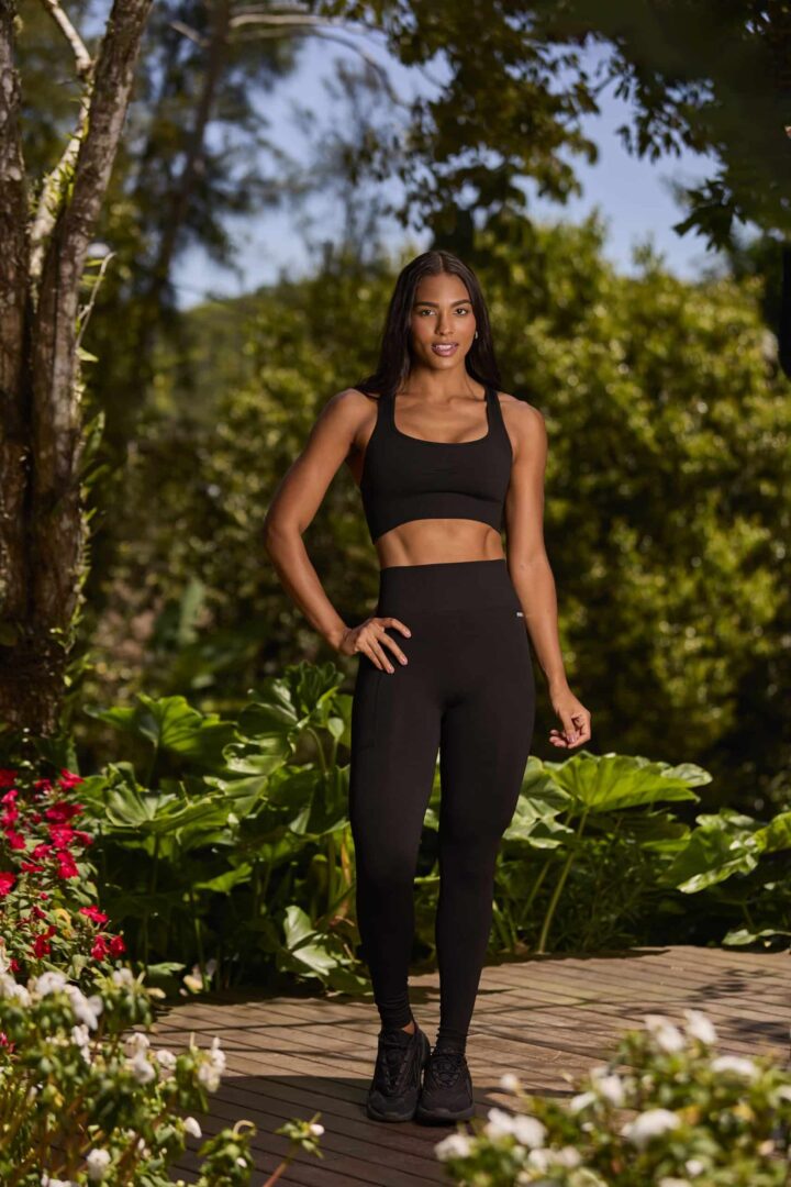 A linha RUN possui tecnologia seamless, traz maior conforto por ter menos costuras e efeito modelador. As peças são sustentáveis, feitas de fio tinto, dispensando corantes nocivos ao meio ambiente na sua produção. Possui proteção UV50+.