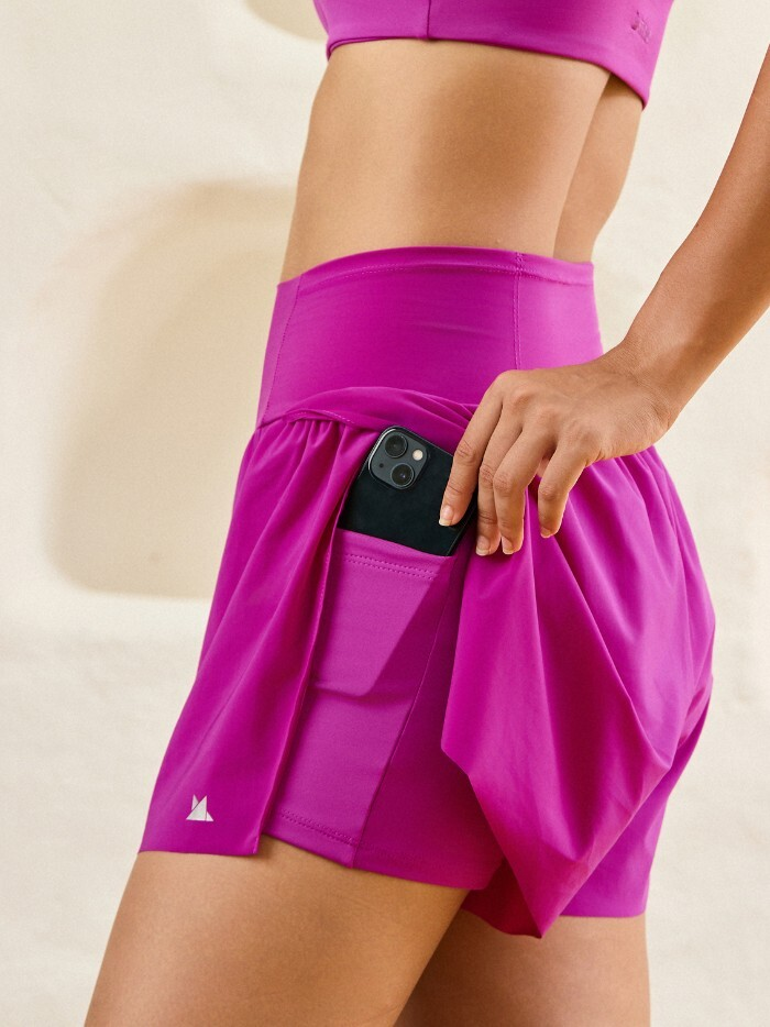 O short Amália foi desenvolvido para proporcionar mobilidade e conforto durante as atividades. Possui fendas laterais e cós de alta compressão que garante ajuste firme ao corpo. O modelo conta com 3 bolsos no cós e 2 bolsos laterais profundos no short interno, oferecendo funcionalidade e segurança para pequenos itens durante o treino. Em tecido opaco, de toque gelado e alta elasticidade, proporciona leveza, frescor e liberdade de movimento.