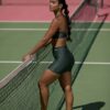 Tecido em poliamida com fio Lycra, confeccionado com tecnologia que reduz a fadiga muscular, elasticidade que se adequa as curvas do corpo e proporciona conforto durante os exercícios. Proteção UV e textura canelada com leve brilho.