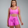 O short perfeito para você entrar na tendência com amarração! Comprimento curto e alta compressão. Detalhes no cós pensados estrategicamente para modelar a cintura. Tecido canelado com leve brilho.