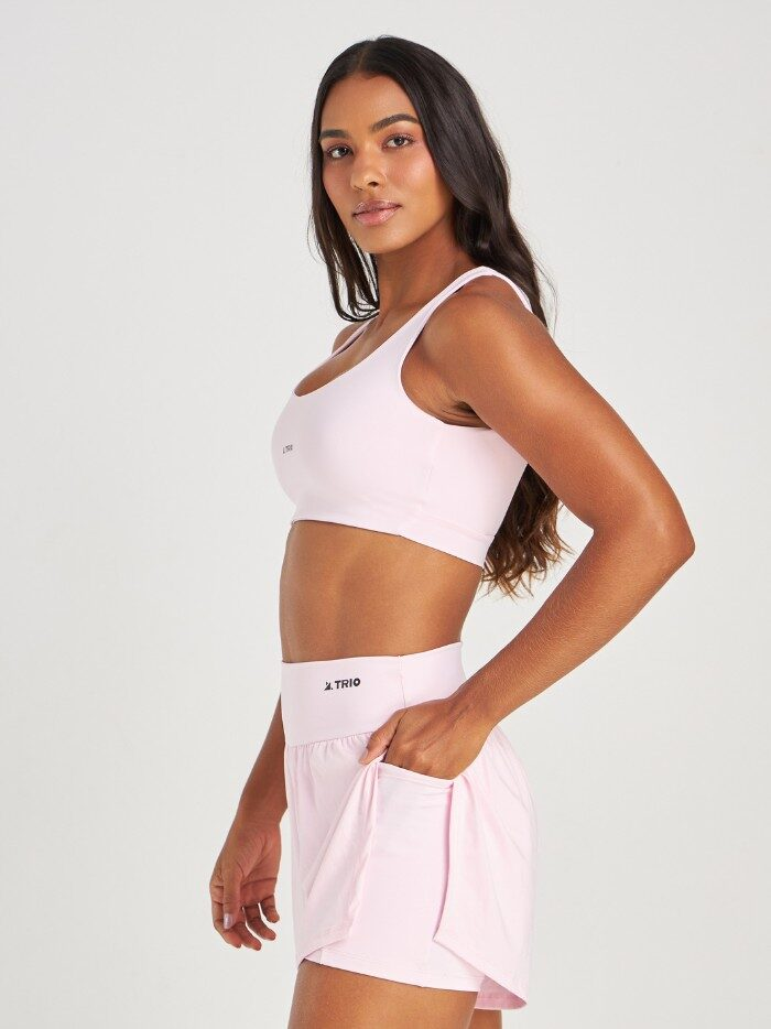 O short Iza é leve e muito confortável, possui abertura lateral, que possibilita maior flexibilidade durante os treinos. O tecido do short de cima é leve, com proteção solar e tecnologia de secagem rápida. o cós possui compressão, mas sem deixar o desconforto de lado. Ah, no shortinho interno tem dois grandes bolsos, para caber tuuuudo!