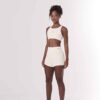 Tecido em poliamida, com proteção UV. Alta compressão e elasticidade, modela o corpo e é perfeito para exercícios de forte impacto.
