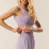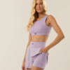 O short Lia tem comprimento médio, cós alto e recorte lateral que acompanha seus movimentos. Possui três bolsos funcionais: dois nas laterais e um no cós, ideais para levar tudo o que você precisa com praticidade.