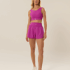 O short Lia tem comprimento médio, cós alto e recorte lateral que acompanha seus movimentos. Possui três bolsos funcionais: dois nas laterais e um no cós, ideais para levar tudo o que você precisa com praticidade.