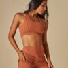 Tecido em poliamida, com proteção UV. Alta compressão e elasticidade, modela o corpo e é perfeito para exercícios de forte impacto.