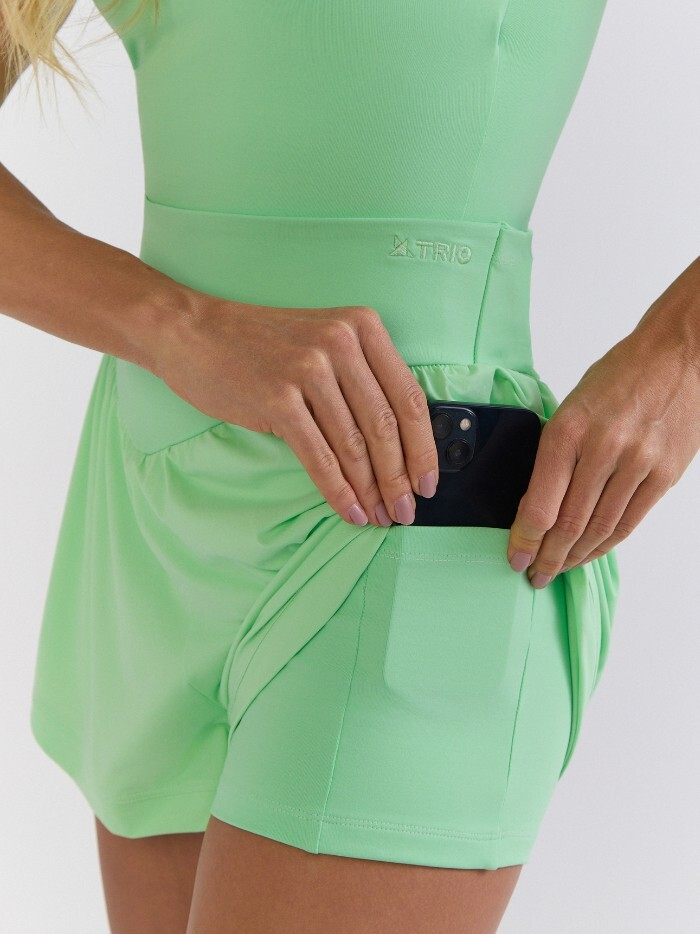 Confeccionado em tecido de alta compressão, conta com tecnologia easy care, toque macio e baixa transparência. O short externo possui toque gelado, alta elasticidade e proteção UV35, unindo performance e conforto em uma peça versátil.