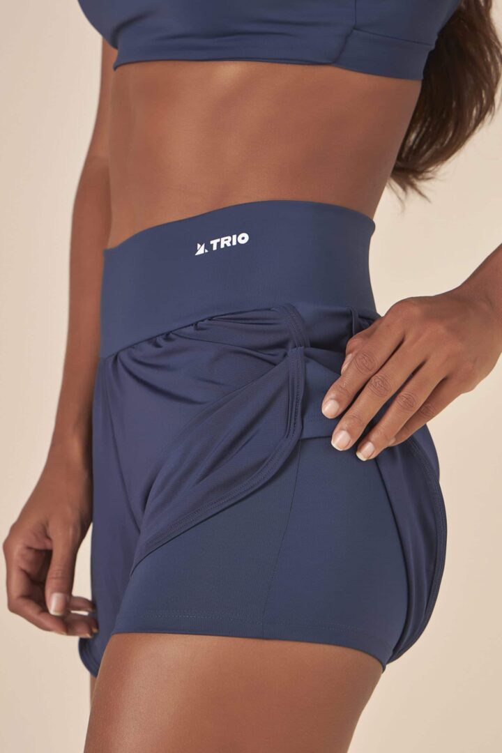 Ele tem a pala e short interno em tecido de compressão, mas o de cima é levinho e com proteção UV! perfeito para esportes ao ar livre!