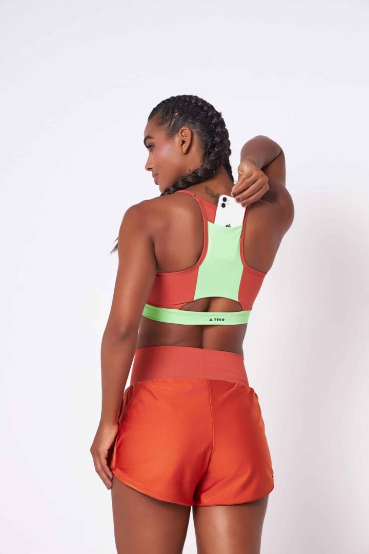 Ele tem a pala e short interno em tecido de compressão, mas o de cima é levinho e com proteção UV! perfeito para esportes ao ar livre!