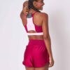 Tecido em poliamida, com proteção UV. Alta compressão e elasticidade, modela o corpo e é perfeito para exercícios de forte impacto.