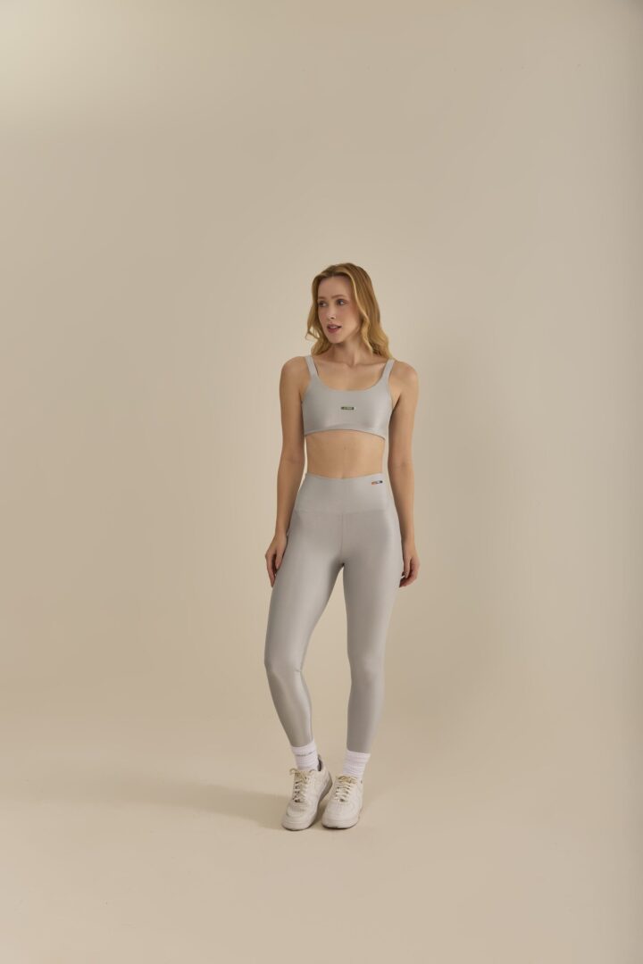 Tecido em poliamida com fio Lycra, confeccionado com tecnologia que reduz a fadiga muscular, elasticidade que se adequa as curvas do corpo e proporciona conforto durante os exercícios. Proteção UV e textura canelada com leve brilho.