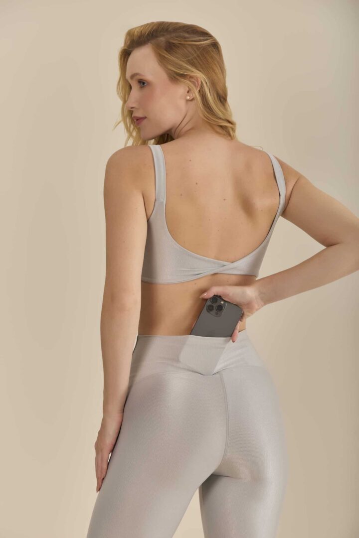 Top básico, para ter um de cada cor! Alças largas, com acabamento em elástico, para te proporcionar maior sustentação. Comprimento curto. O detalhe torcido nas costas é um charme a mais. Possui entrada para bojo e compressão alta.