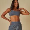 Tecido em poliamida, com proteção UV. Alta compressão e elasticidade, modela o corpo e é perfeito para exercícios de forte impacto.