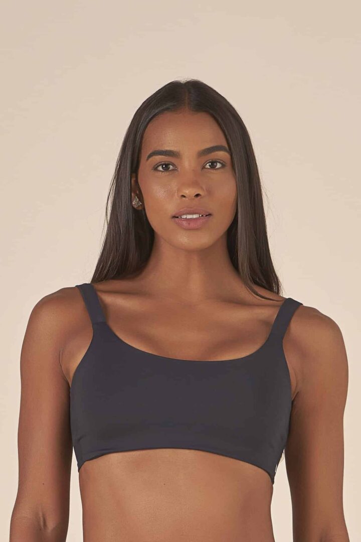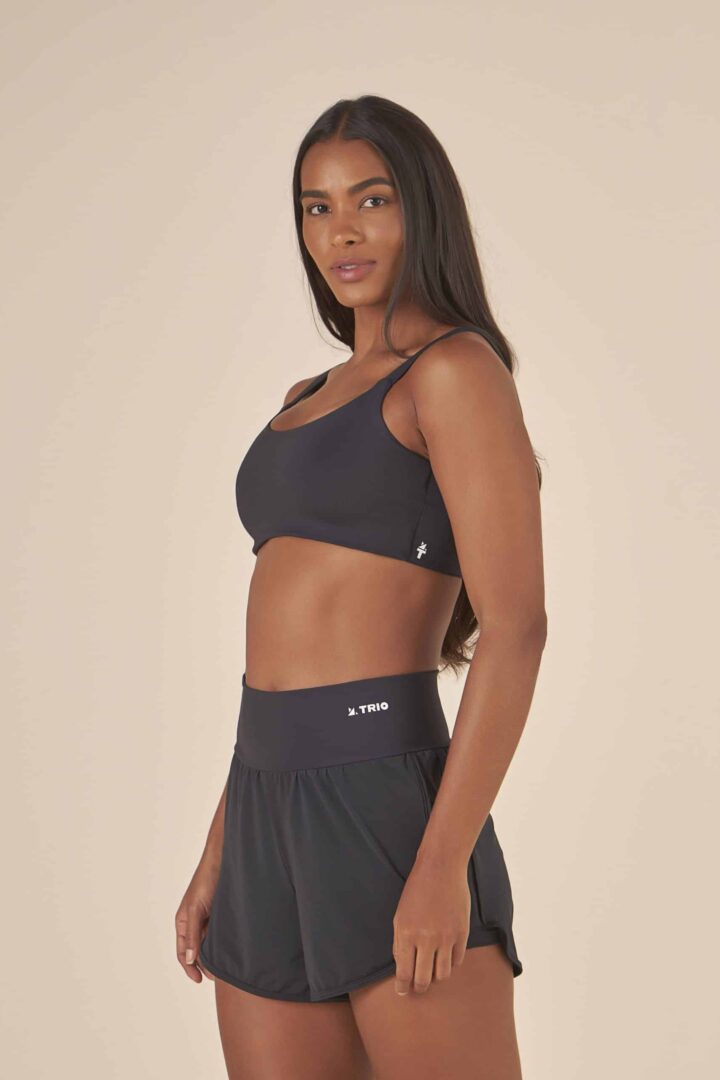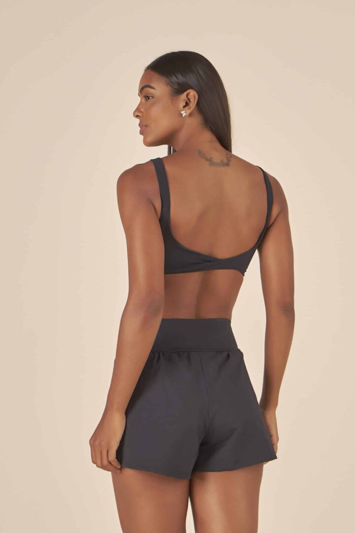 Top básico, para ter um de cada cor! Alças largas, com acabamento em elástico, para te proporcionar maior sustentação. Comprimento curto. O detalhe torcido nas costas é um charme a mais. Possui entrada para bojo e compressão alta.