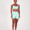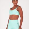 Tecido em poliamida, com proteção UV. Alta compressão e elasticidade, modela o corpo e é perfeito para exercícios de forte impacto.