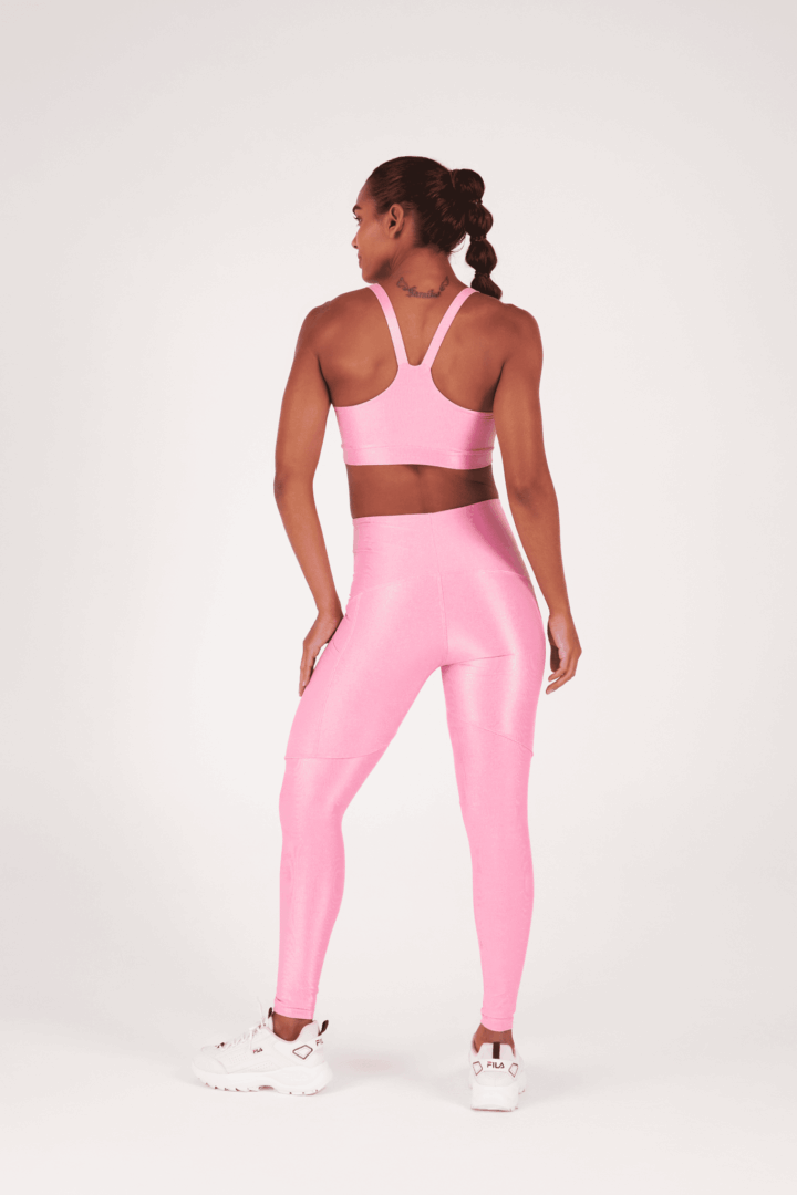 Tecido em poliamida com fio Lycra, confeccionado com tecnologia que reduz a fadiga muscular, elasticidade que se adequa as curvas do corpo e proporciona conforto durante os exercícios. Proteção UV e textura canelada com leve brilho.