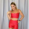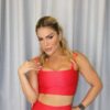 Nosso Top Luiza é perfeito para os treinos e para montar seu look do dia a dia, com alta sustentação e decote reto que valoriza o busto. Tecido canelado com leve brilho.