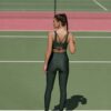 Tecido em poliamida com fio Lycra, confeccionado com tecnologia que reduz a fadiga muscular, elasticidade que se adequa as curvas do corpo e proporciona conforto durante os exercícios. Proteção UV e textura canelada com leve brilho.