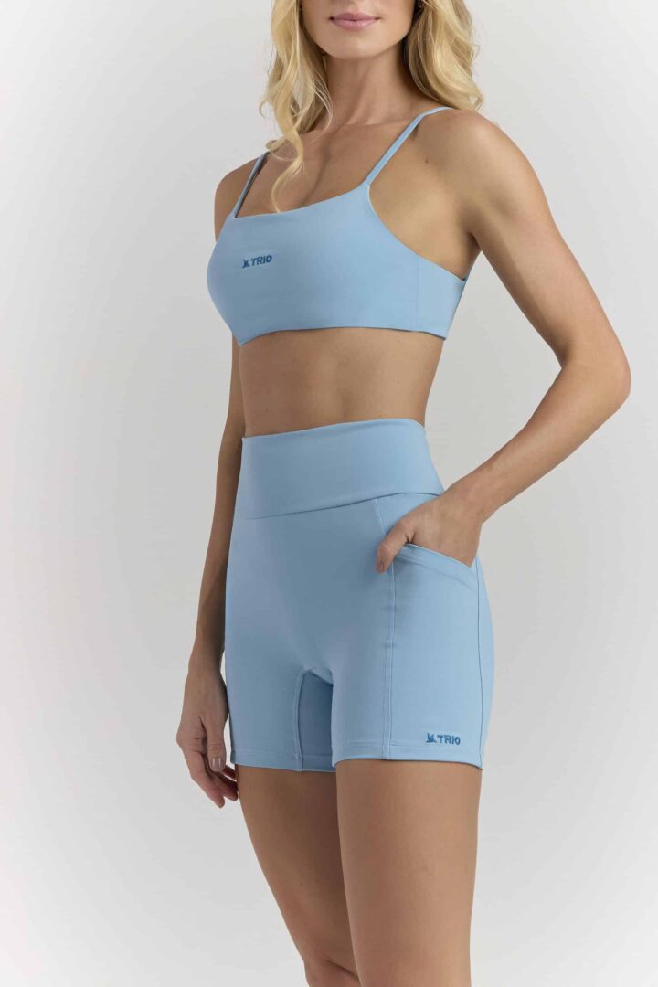 Tecido em poliamida, com proteção UV. Alta compressão e elasticidade, modela o corpo e é perfeito para exercícios de forte impacto.