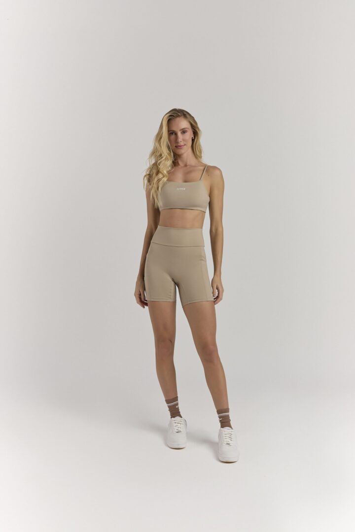 Tecido em poliamida, com proteção UV. Alta compressão e elasticidade, modela o corpo e é perfeito para exercícios de forte impacto.