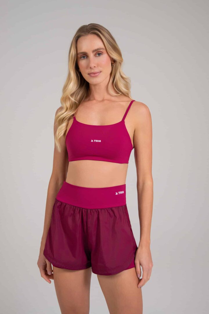 Tecido em poliamida, com proteção UV. Alta compressão e elasticidade, modela o corpo e é perfeito para exercícios de forte impacto.