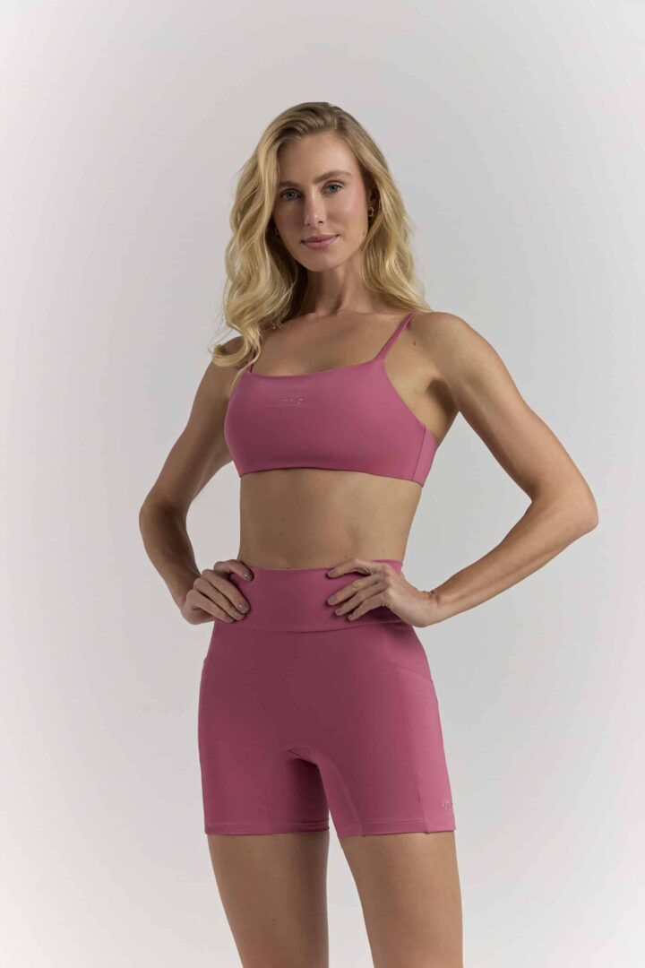 Tecido em poliamida, com proteção UV. Alta compressão e elasticidade, modela o corpo e é perfeito para exercícios de forte impacto.
