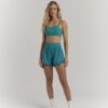 Tecido em poliamida, com proteção UV. Alta compressão e elasticidade, modela o corpo e é perfeito para exercícios de forte impacto.