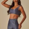 Tecido em poliamida com fio Lycra, confeccionado com tecnologia que reduz a fadiga muscular, elasticidade que se adequa as curvas do corpo e proporciona conforto durante os exercícios. Proteção UV e textura canelada com leve brilho.