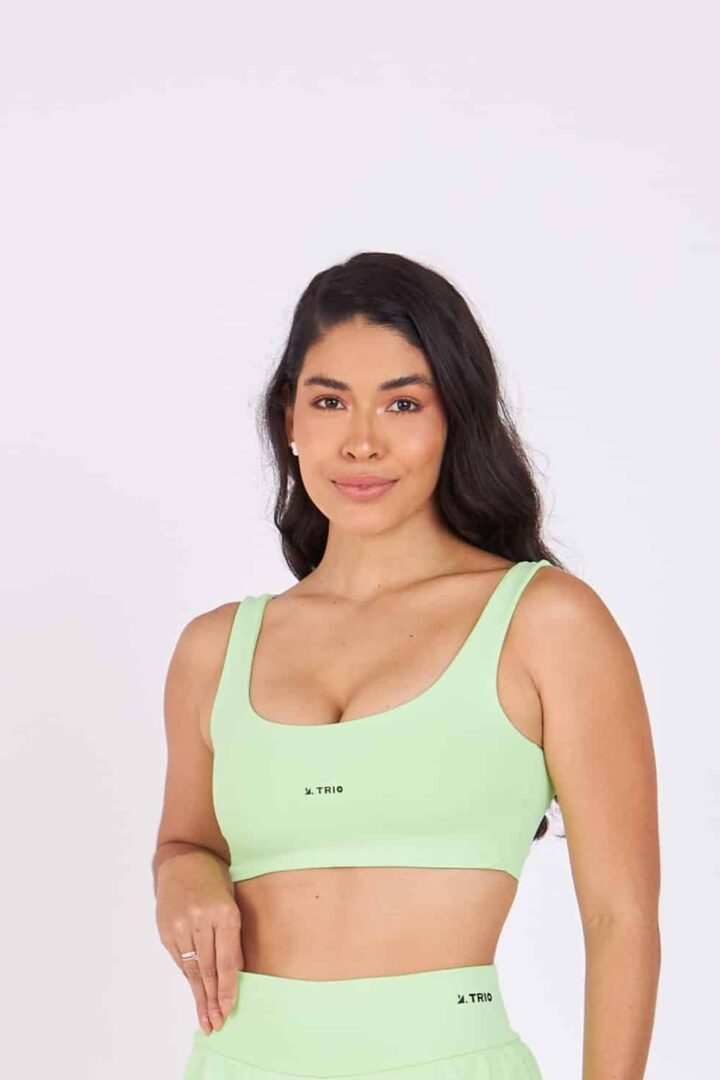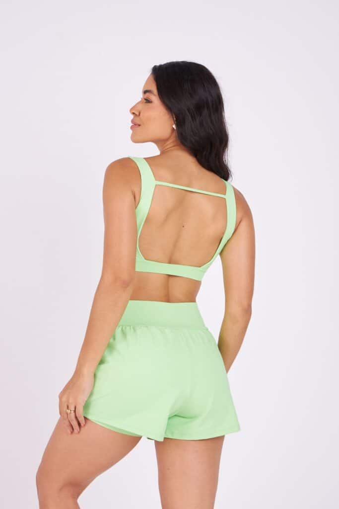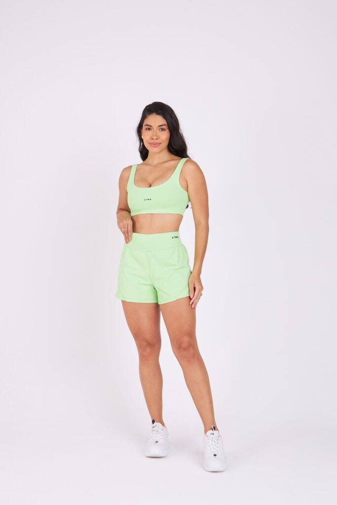 Tecido em poliamida, com proteção UV. Alta compressão e elasticidade, modela o corpo e é perfeito para exercícios de forte impacto.