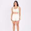 Tecido em poliamida, com proteção UV. Alta compressão e elasticidade, modela o corpo e é perfeito para exercícios de forte impacto.