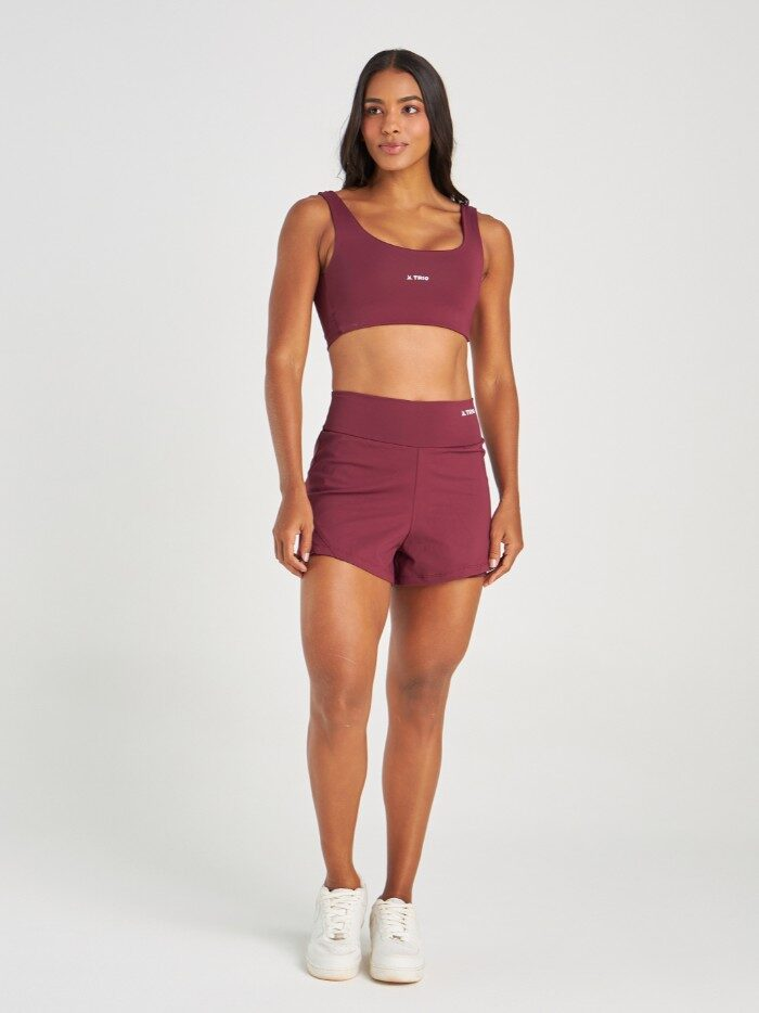 Tecido em poliamida, com proteção UV. Alta compressão e elasticidade, modela o corpo e é perfeito para exercícios de forte impacto.