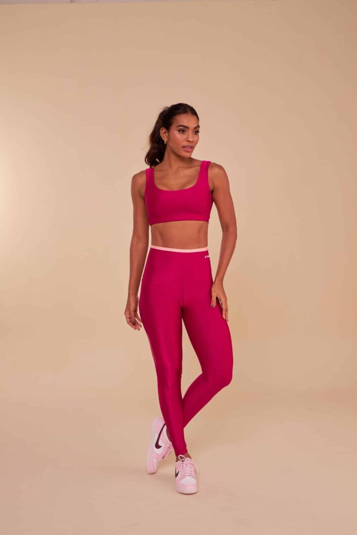 Tecido em poliamida com fio Lycra, confeccionado com tecnologia que reduz a fadiga muscular, elasticidade que se adequa as curvas do corpo e proporciona conforto durante os exercícios. Proteção UV e textura canelada com leve brilho.