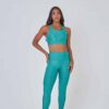 Tecido em poliamida com fio Lycra, confeccionado com tecnologia que reduz a fadiga muscular, elasticidade que se adequa as curvas do corpo e proporciona conforto durante os exercícios. Proteção UV e textura canelada com leve brilho.