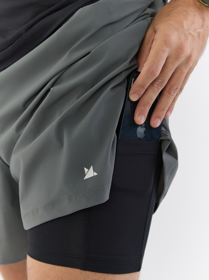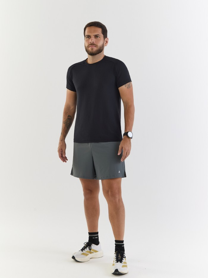 O short interno é confeccionado em poliamida com elastano, oferecendo toque macio, respirabilidade e total liberdade de movimentos, sem efeito de compressão. Conta ainda com dois bolsos laterais, ideais para carregar itens essenciais com segurança.