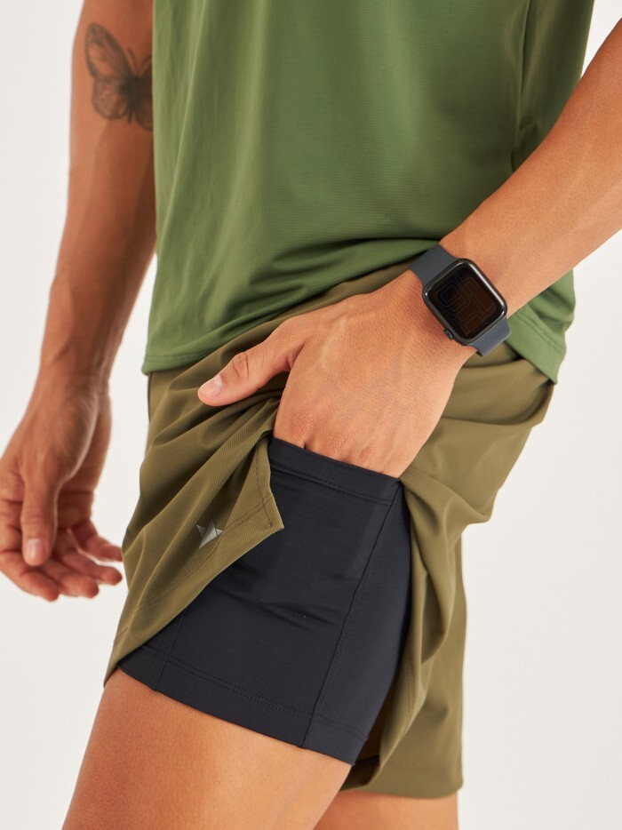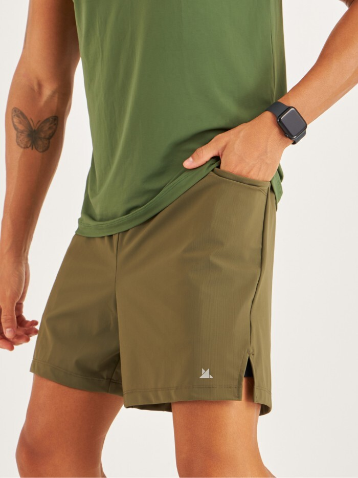 O short interno é confeccionado em poliamida com elastano, oferecendo toque macio, respirabilidade e total liberdade de movimentos, sem efeito de compressão. Conta ainda com dois bolsos laterais, ideais para carregar itens essenciais com segurança.