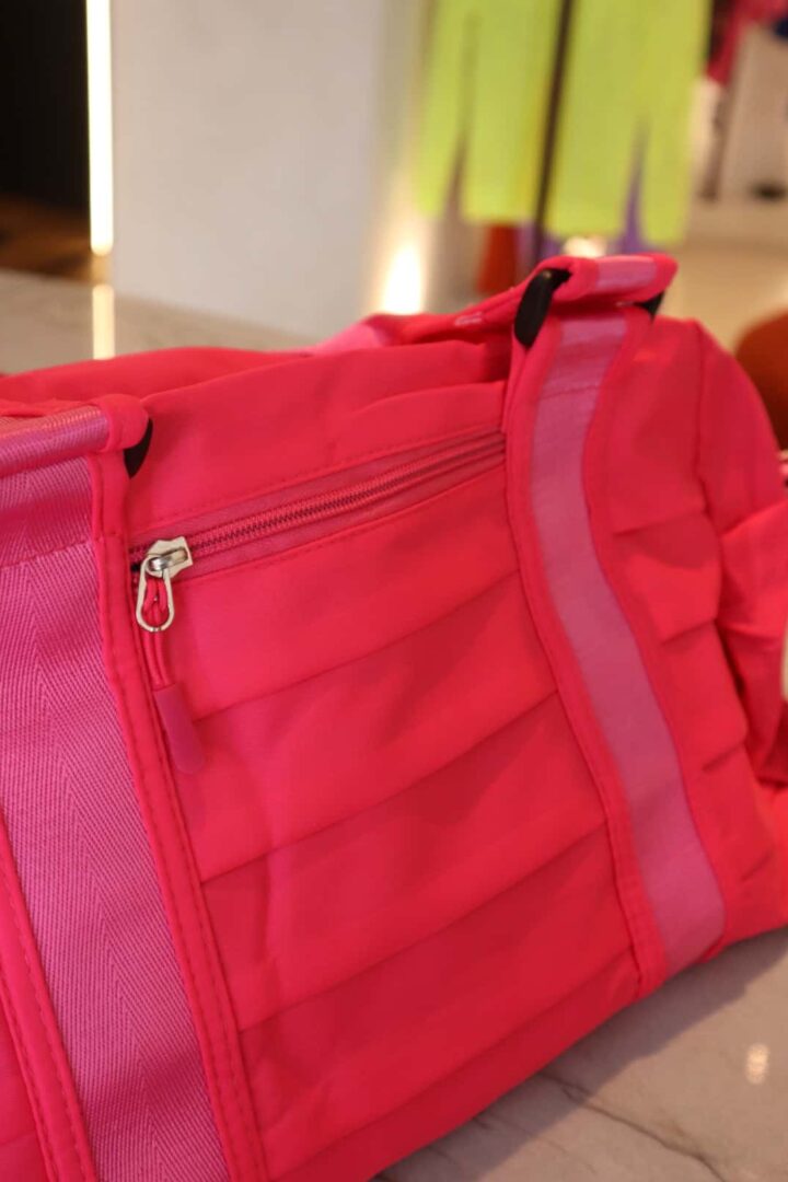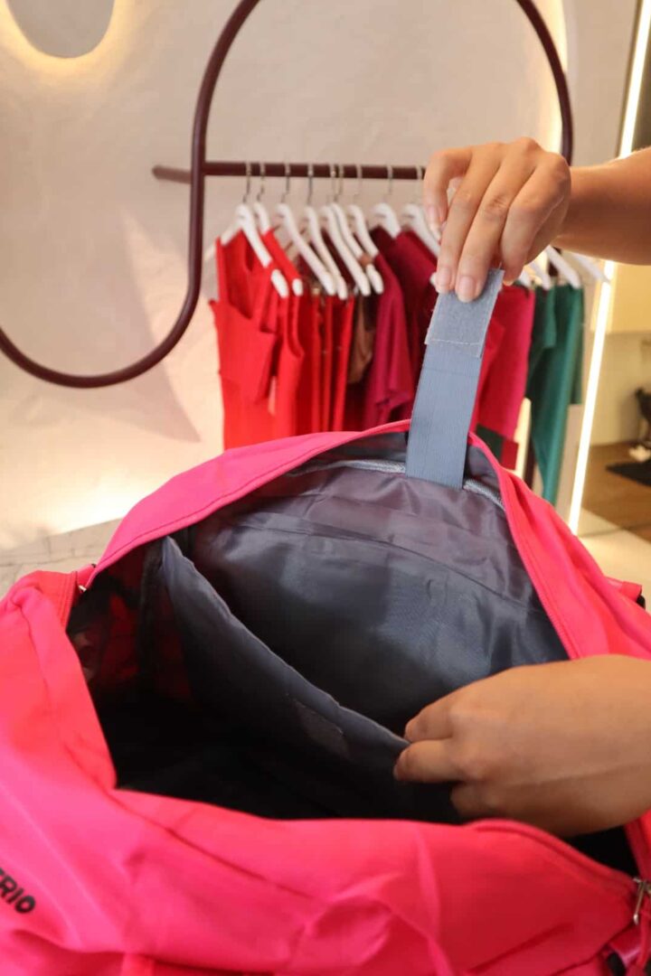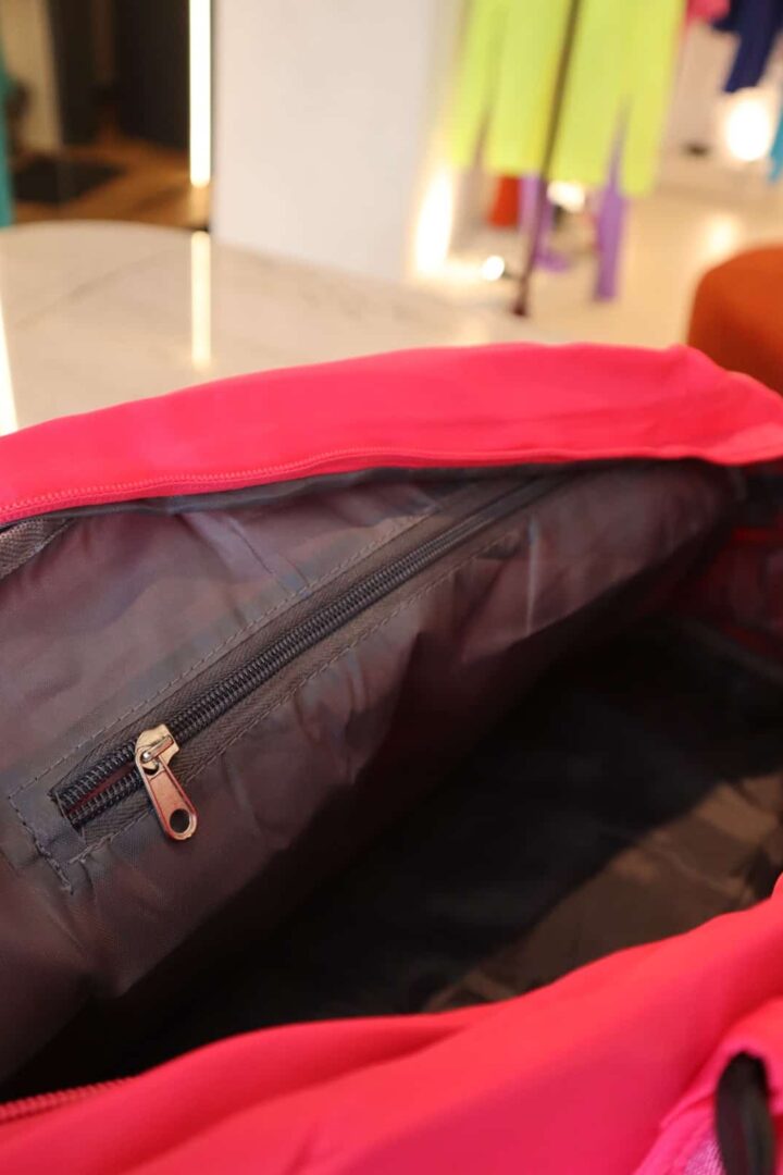 Confeccionada em tecido impermeável, com alça regulável. Possui bolso externo para tênis. Divisória interna acolchoada para notebook ou ipad, além de bolsos que são ótimos para guardar acessórios menores.