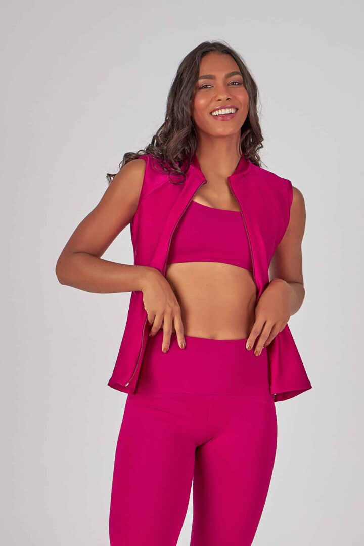 Conjunto Legging Luiza Desejo + Top Clarice Desejo + Colete Vic Desejo Perolado