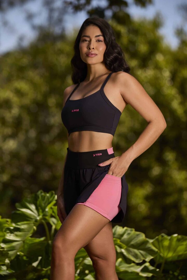 CONJUNTO TOP CRIS + SHORT IZA PRETO/POP PINK
