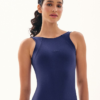 O macacão Martina possui decote super alto e recortes pespontados que agregam design à peça. Conta com forro elastizado no busto, garantindo sustentação, e modelagem justa ao corpo, com frente sem recortes para valorizar a silhueta. Nas costas, o decote profundo traz um visual marcante e sofisticado. Confeccionado em poliamida com fio Lycra, tem média compressão, toque macio, elasticidade que se ajusta às curvas do corpo, tecido canelado com leve brilho, além de proteção UV+ e tecnologia anti-fadiga.