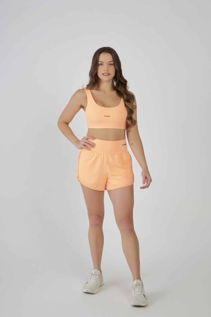 Tecido em poliamida, com proteção UV. Alta compressão e elasticidade, modela o corpo e é perfeito para exercícios de forte impacto.