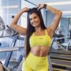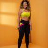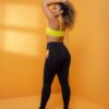 Tecido verde limão com toque algodoado. Top de alta sustentação.